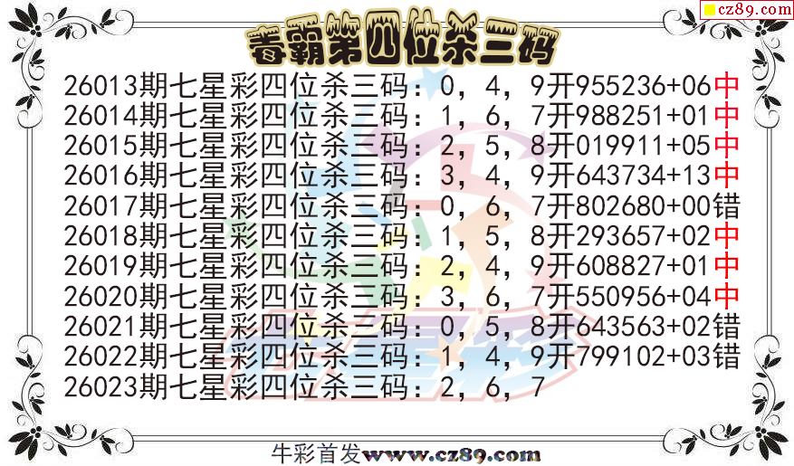 七星彩2026023期毒霸第四位杀三码图迷 10中7-千禧3d试机号金码关注码杀码_今天3d试机号金码查询-福彩网